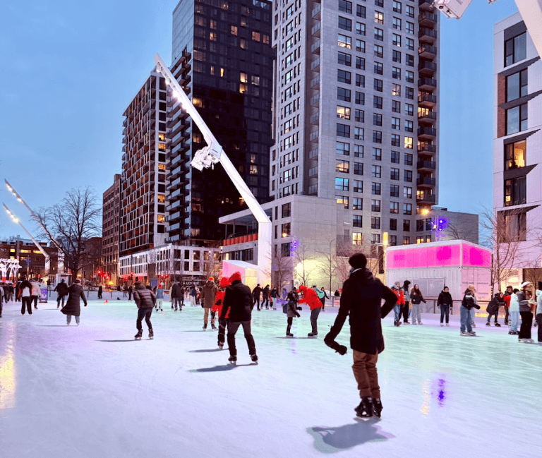 La patinoire urbaine par excellence ! En plein cœur du Quartier des spectacles, l’Esplanade Tranquille offre une expérience unique avec ses projections interactives sur la glace qui créent un spectacle lumineux sous vos patins. L’ambiance festive est garantie avec des soirées DJ, de la musique en continu et même des cours de patinage gratuits certains après-midis.