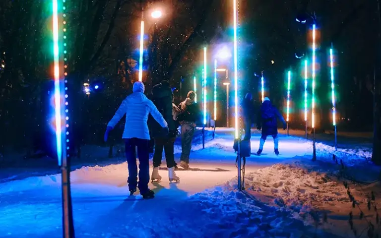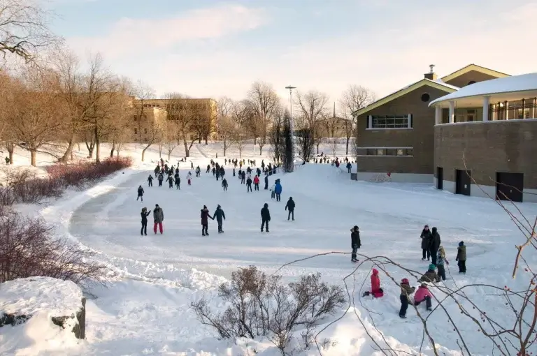 Après le patinage : Promenez-vous dans le magnifique parc illuminé le soir, ou réchauffez-vous dans l’un des nombreux cafés du Plateau tout proche.