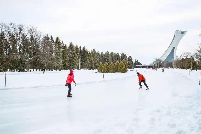 La plus grande patinoire de l’est de Montréal ! Le soir, profitez de la vue spectaculaire sur le Stade olympique illuminé pendant que vous glissez. L’ambiance y est plus tranquille que dans les parcs centraux, idéal si vous recherchez de l’espace.