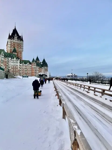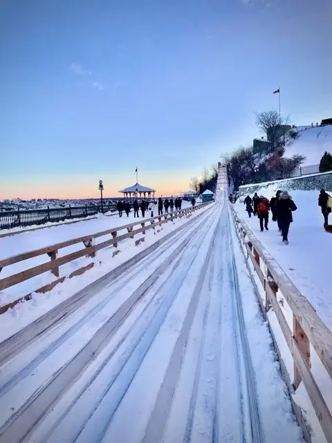 Il y a des activités d’hiver « cool ». Et il y a celles qui est dans ta bucket list des choses à faire une fois dans ta vie. La glissade Au 1884, sur la terrasse Dufferin, doit absolument en faire partie. Imagine descendre une structure en bois centenaire, une descente qui file vite (très vite), et un décor iconique, que tu te crois dans un film, juste à côté du Château Frontenac, l’hôtel le plus photographié au monde au cœur du Vieux-Québec.